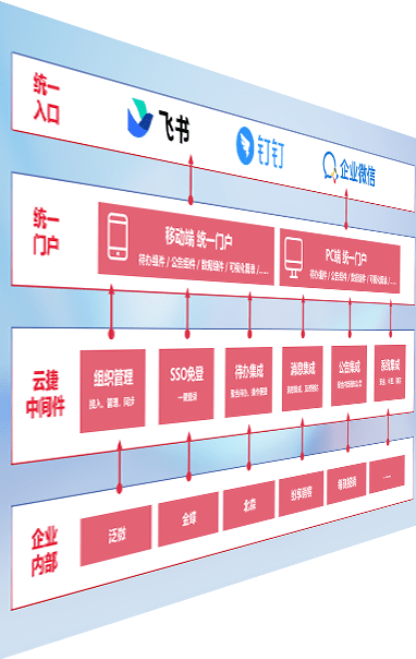 对协作平台提供支持服务,,,,支持企业应用与协作平台对接,,包含组织同步、、、消息集成、、待办集成等。。。支持目前主流的协作平台:钉钉、、、企微和飞书。。